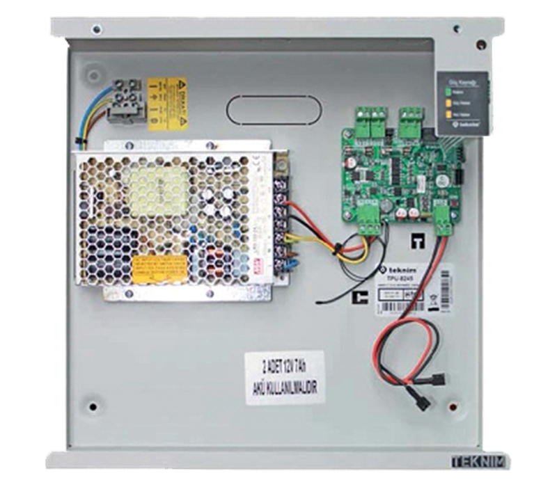 EN-54 Sertifikaya sahip Teknim TPU-8245, harici besleme gerektiren sistemlerde kullanılmak üzere tasarlanmış, akıllı akü şarj ünitesini üzerinde bulun